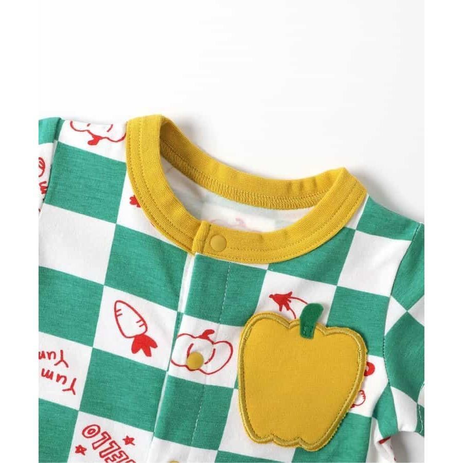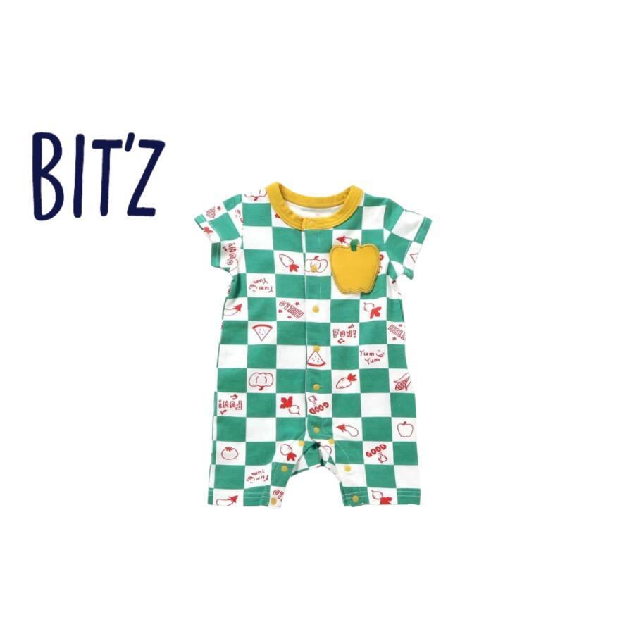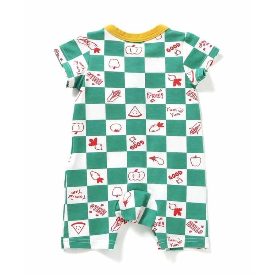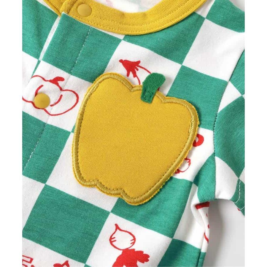 BIT'Z(ビッツ)のカバーオール・ロンパース「おっきなフルーツ柄&ベジタブルブロックチェック柄ロンパス」は、POPでカラフルなデザインが人気!小さなお子様への贈り物や出産祝いにも最適。