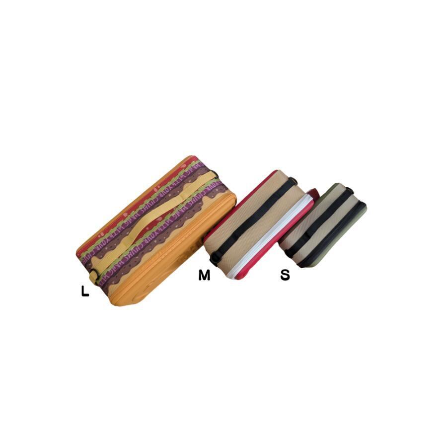 新色はハンバーガーをモチーフにしたデザインで、蓋部分と底面をバンズに見立てて、具沢山のハンバーガーを表現しました。