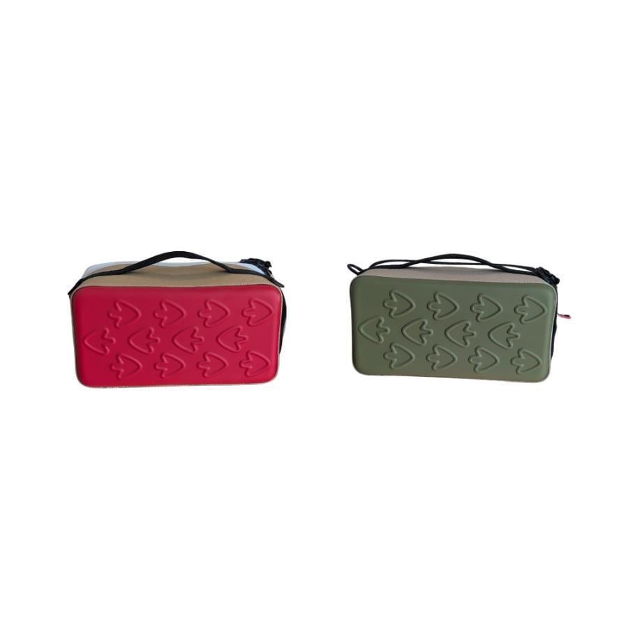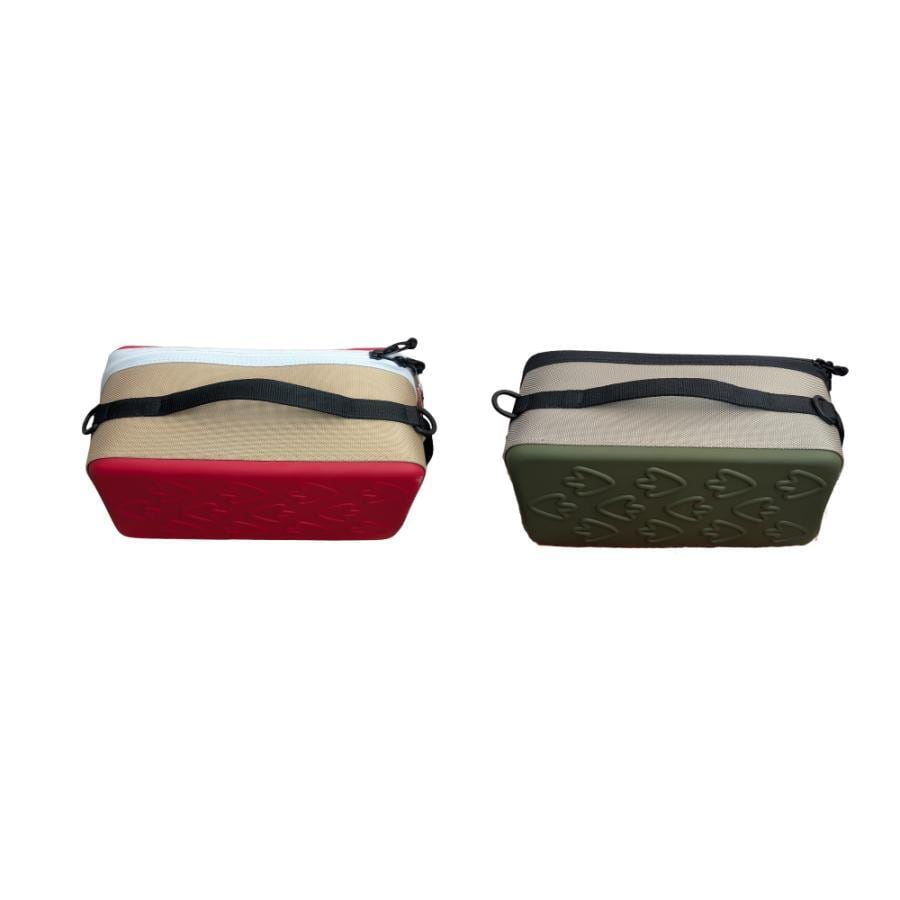 衝撃に強く、耐久性の高いEVA樹脂を使用したハードケース(Mサイズ)。内側の側面にはマイクロフリースを採用しているのでクッション性もあり、衝撃から中身を守ってくれます。Mサイズはアウトドア用の食器をまとめて入れたり、一眼レフカメラの収納、ペグケースにもおすすめ。