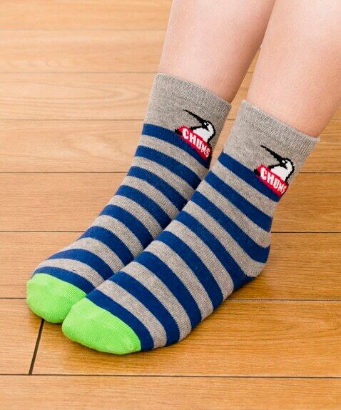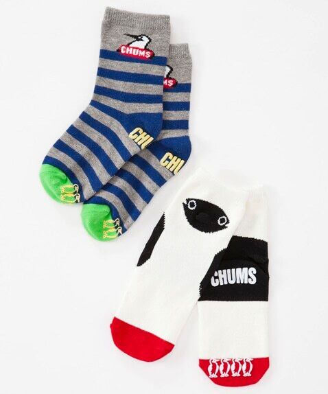 憎めないキュートな顔とちょこんととがったくちばしがなんとも愛くるしい。異なるデザインの2足セットで、2パターンの展開。裏側のチャムスロゴとブービーは滑り止めとなっています。大人サイズ・赤ちゃんサイズの展開もあるので、親子みんなでお揃いはいかがでしょうか♪