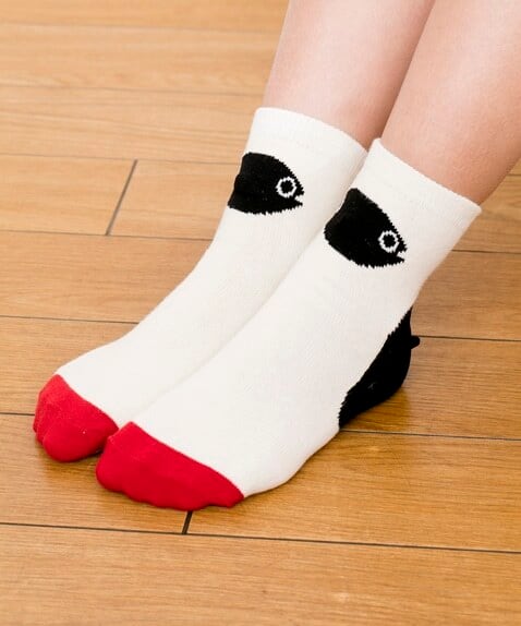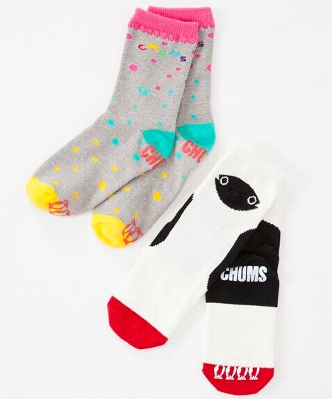 憎めないキュートな顔とちょこんととがったくちばしがなんとも愛くるしい。異なるデザインの2足セットで、2パターンの展開。裏側のチャムスロゴとブービーは滑り止めとなっています。大人サイズ・赤ちゃんサイズの展開もあるので、親子みんなでお揃いはいかがでしょうか♪