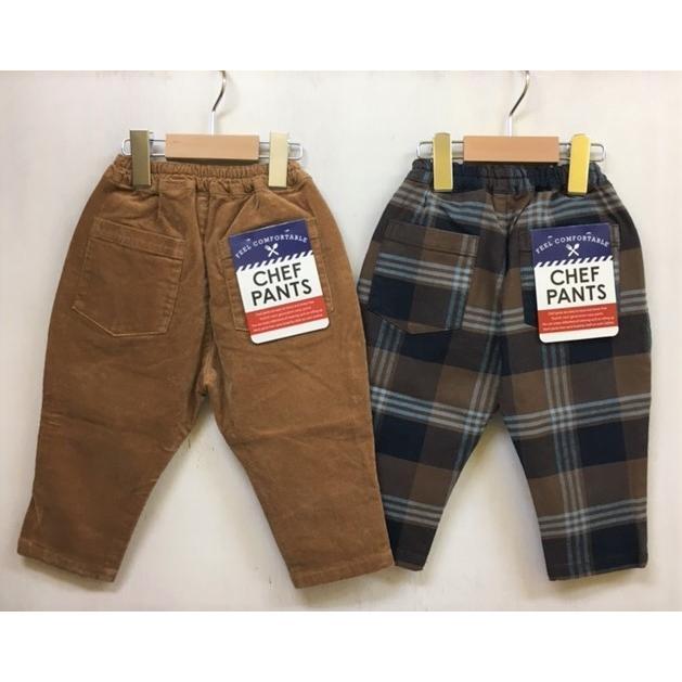 F.O.KIDS(エフオーキッズ)のシェフパンツは、手頃な価格でカラバリ豊富な10丈パンツです。ウエスト総ゴムで着脱も簡単、通園・通学のデイリーウェアにピッタリ!色によって柄や素材が異なるので、色違いで揃えるのもおすすめ。キャメルはコーデュロイ生地になります。