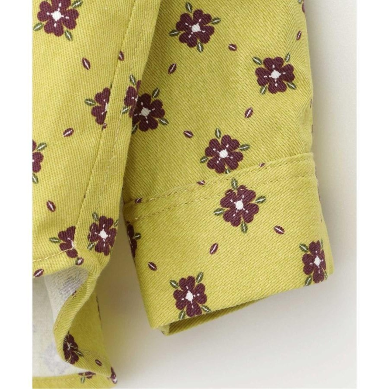 クローバーが総柄プリントされたシャツジャケット。