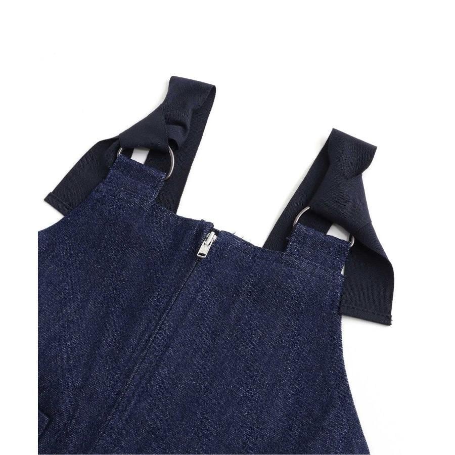 合わせやすいデニム素材のジャンパースカート。ファスナーの前開きでお着替えも楽々◎