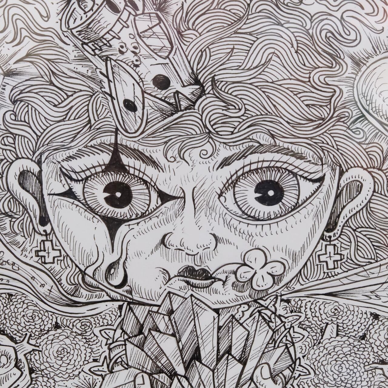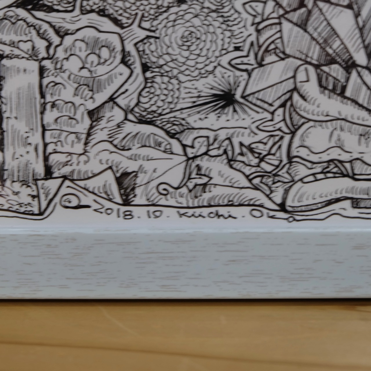 ペン一本から生み出される、気の遠くなるほど緻密な線とドットの集積。 画面を埋め尽くす圧倒的な情報量の中には、独創的なキャラクター、飛行機、富士山、そして散りばめられた記号たちが、一つの壮大な物語を紡いでいます。 デジタルでは決して表現できない、アナログの肉筆ならではの力強さと繊細さを、ぜひお手元でご堪能ください。