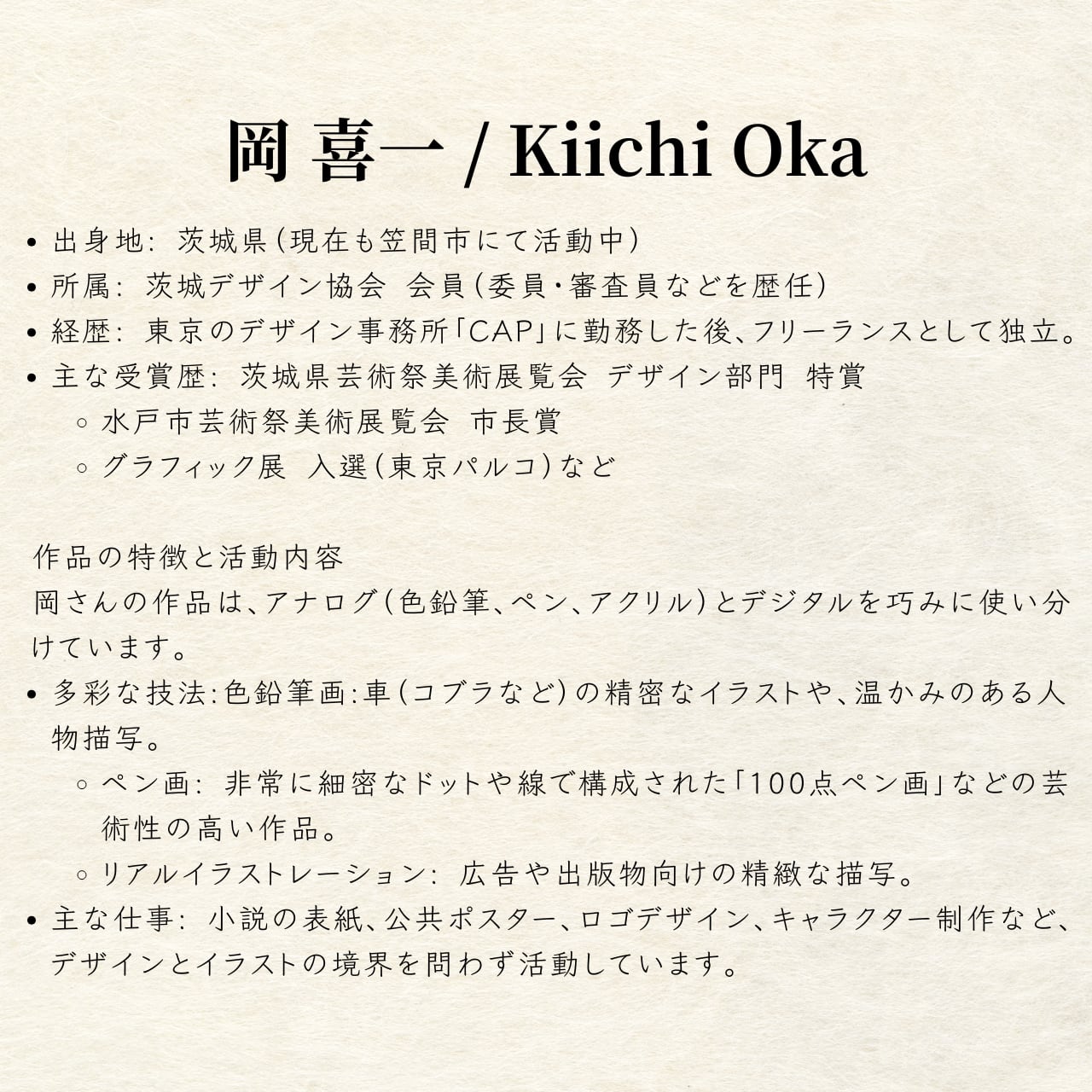 ■ 作家プロフィール:岡 喜一(Kiichi Oka)