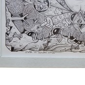 ペン一本から生み出される、気の遠くなるほど緻密な線とドットの集積。 画面を埋め尽くす圧倒的な情報量の中には、独創的なキャラクター、飛行機、富士山、そして散りばめられた記号たちが、一つの壮大な物語を紡いでいます。 デジタルでは決して表現できない、アナログの肉筆ならではの力強さと繊細さを、ぜひお手元でご堪能ください。