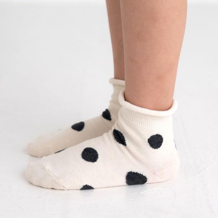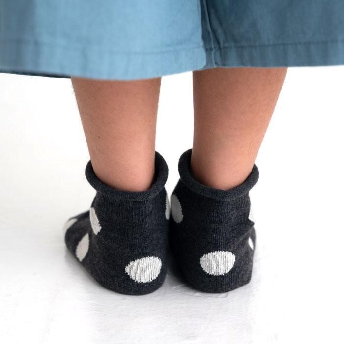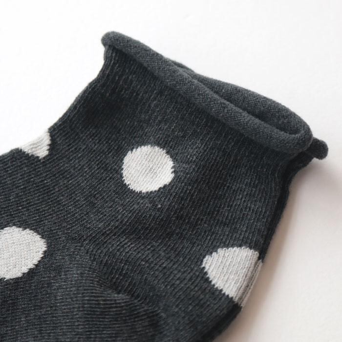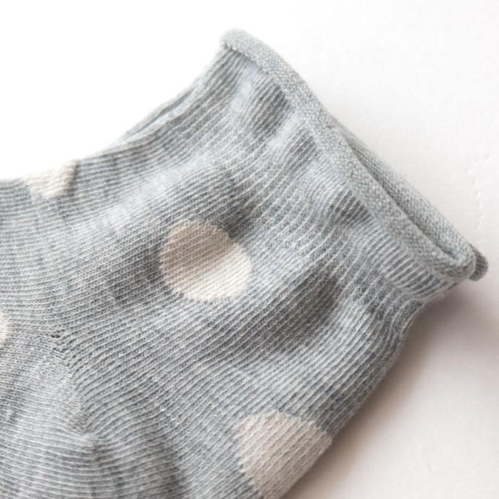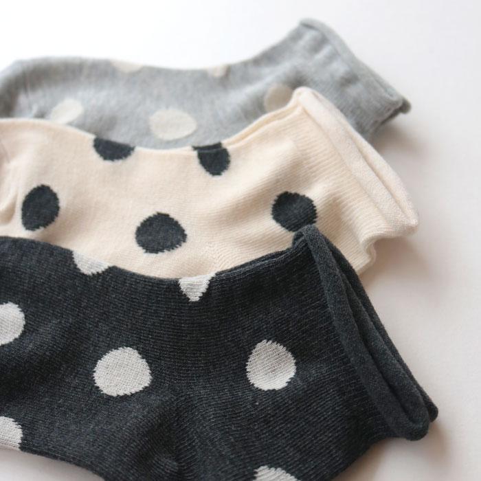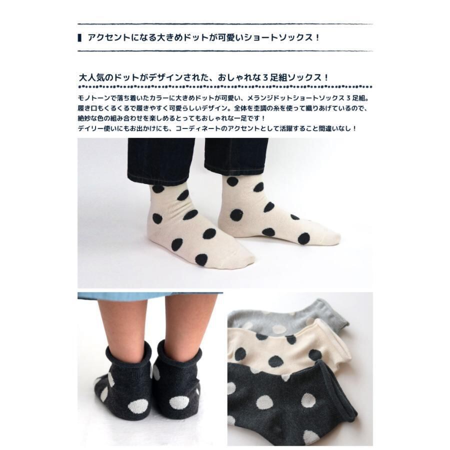 モノトーンで落ち着いたカラーに大きめドットが可愛い、メランジドットショートソックス3足組。
