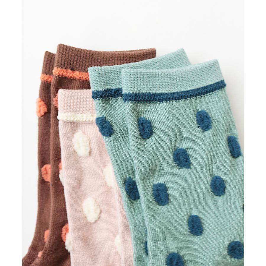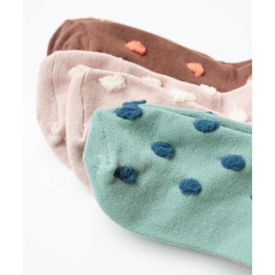 みんな大好きなドット柄が立体的に浮き出て、小さなポンポンが付いている様なポンポンドットクルーソックス3足組。
