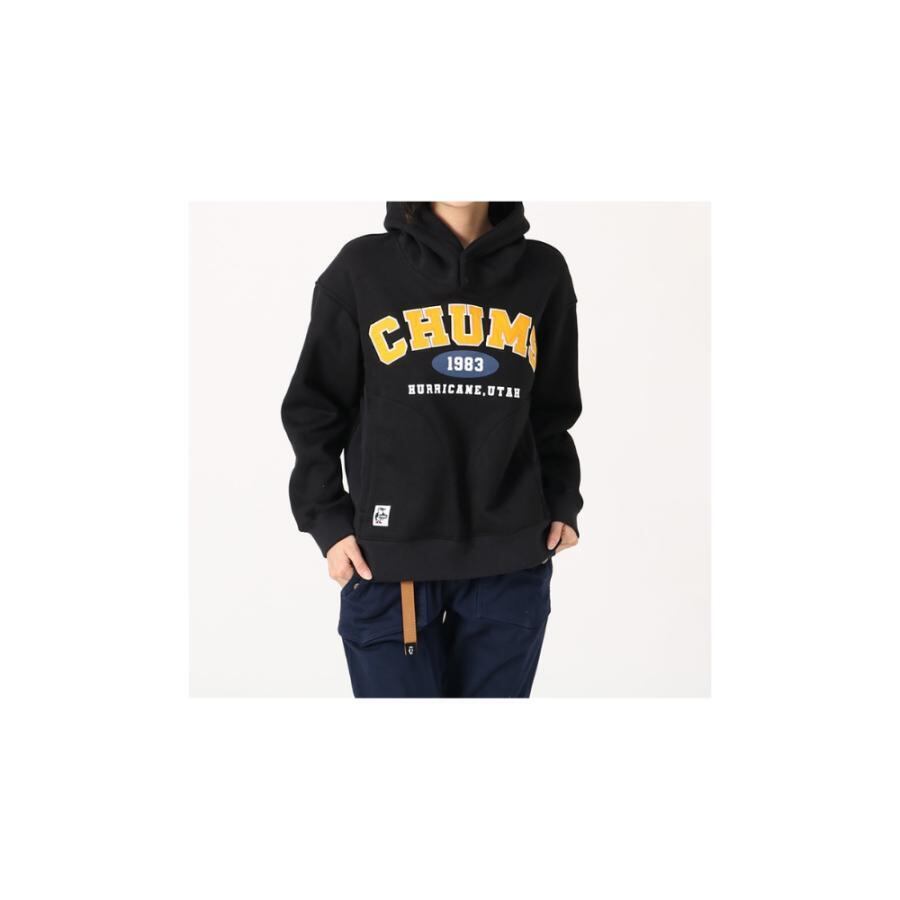 クラシックなカレッジグラフィックにCHUMSロゴを落とし込んだプルオーバーパーカー。ゆったりとしたオーバーサイズシルエットに、しっかりと立つ大きめのフードが特徴的。フロントにはポケットとアーチ状にCHUMSのパッチを配し、誕生年である1983のオールドロゴや本拠地ユタ州をレタリング。一枚着としてはもちろん、アウターの下でインナー使いしてもアクセントになりコーディネートをまとめてくれる一枚。